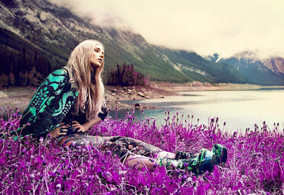 Nature of Prints – Model Elsa Hosk dons lush patterns amidst a dreamscape of colors in Chris Nicholls’ images for Flare Magazine’s September issue. Styled by Elizabeth Cabral, Elsa wears vibrant selects with prints and texture, while hair and make-up artist Simone Otis gives Elsa a slightly wild look, using natural looking tresses and subtly sun-kissed skin.